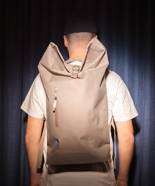RE:PET Hauptmaterial aus recyceltem Ocean Impact Plastic, Innenfutter aus recyceltem PET, Schnallen aus recyceltem PA, Webbänder aus recyceltem PET, Polsterschaum aus PE, Reißverschlüsse aus Nylon, Staub- und wasserdicht nach IP54 mit hochfrequenz-verschweißten Nähten, TPU-Innen- und PU-Außenbeschichtung, PFAS- und PVC-frei